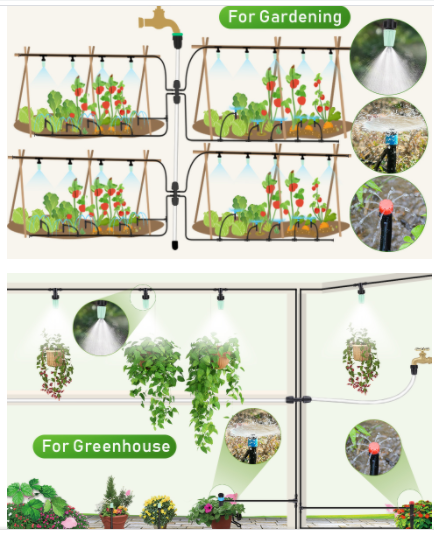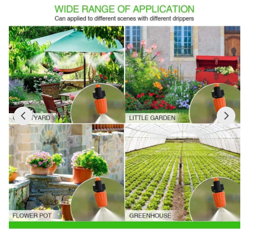 This sprayer watering system can water your plants according to your desire automatically. It can save up to 70% in water savings and watering all your plants at one time. No more wasting your time and water. At the same time, it helps you keep healthy and lush plants with low water usage. When sprayer irrigation watering is directed to the root of the plant, it reduces most of the evaporation.